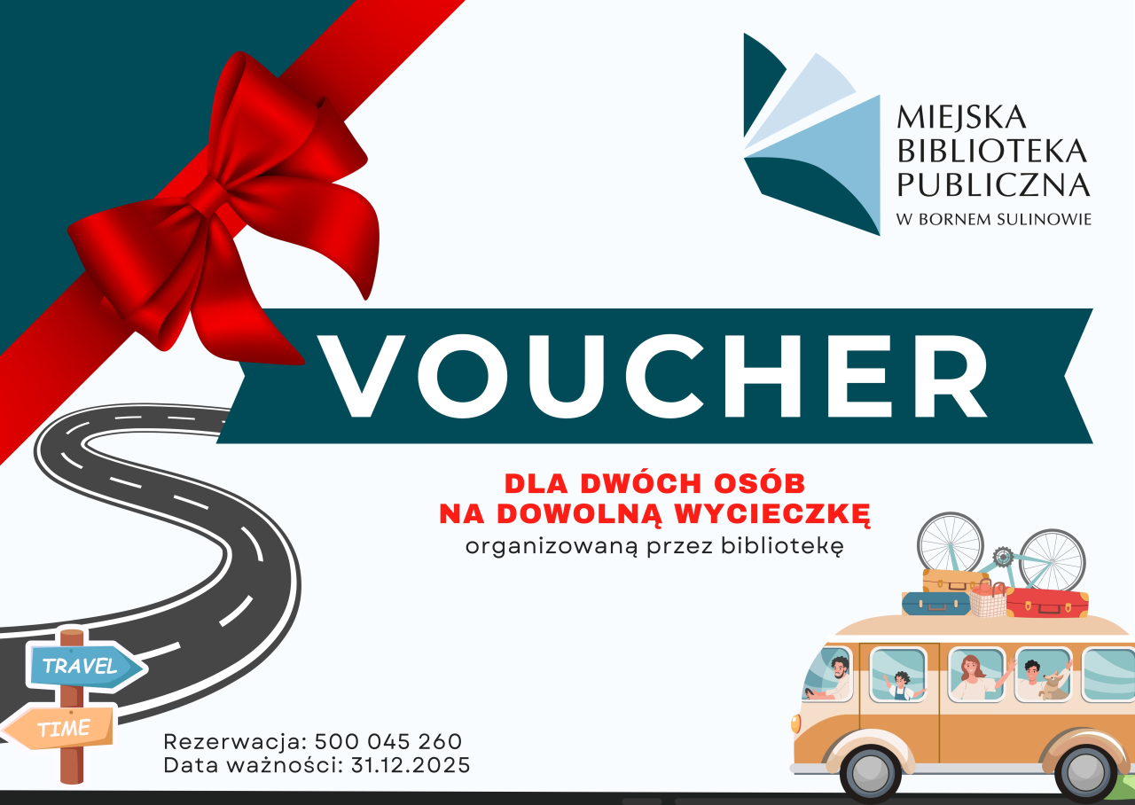 Weź udział w naszej licytacji i zdobądź niepowtarzalny voucher na dowolną wycieczkę organizowaną przez bibliotekę! Voucher przeznaczony jest dla dwóch osób i może być wykorzystany przez dzieci, młodzież i dorosłych.