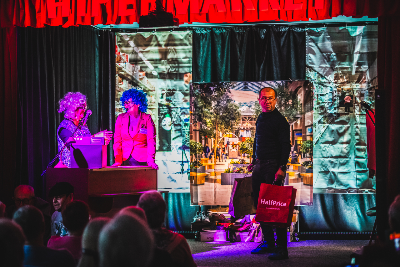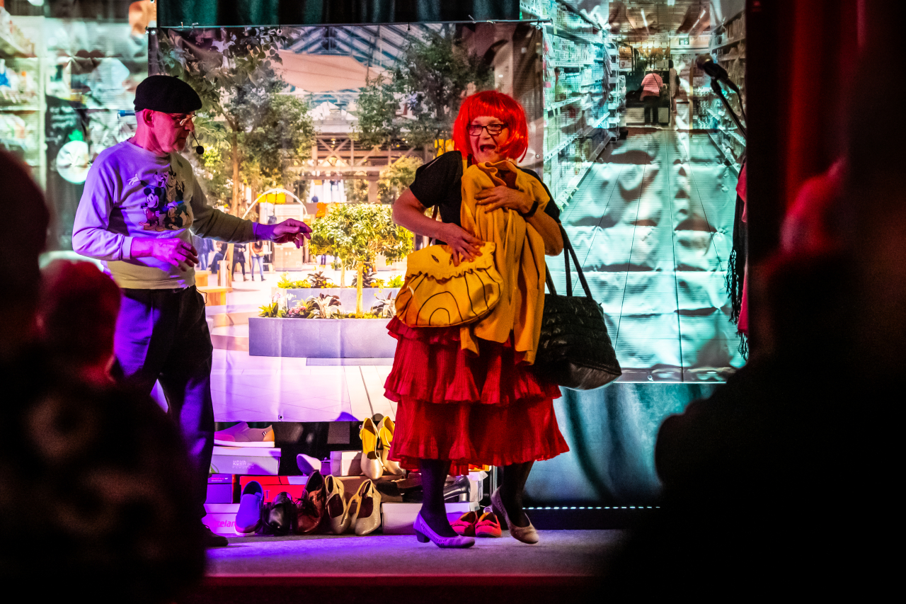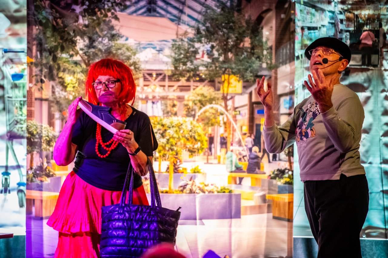 Aktorzy z kabaretu działającego przy bibliotece popisali się znakomitym wyczuciem komizmu, bawiąc publiczność dialogami pełnymi ciętych ripost i dowcipów sytuacyjnych. „Stoisko z pieczywem”, „Buty do dupy”, „Kolejka przed kasą” to tylko nieliczne, które zostały zaprezentowane. Sceny, w których kabaret pokazywał charakterystyczne typy klientów spotykanych w hipermarketach, idealnie trafiły w gust widzów, którzy odnajdywali w nich znane wszystkim sytuacje. Śmiechom towarzyszyły oklaski, a każdy kolejny skecz był przyjmowany z niegasnącym entuzjazmem.