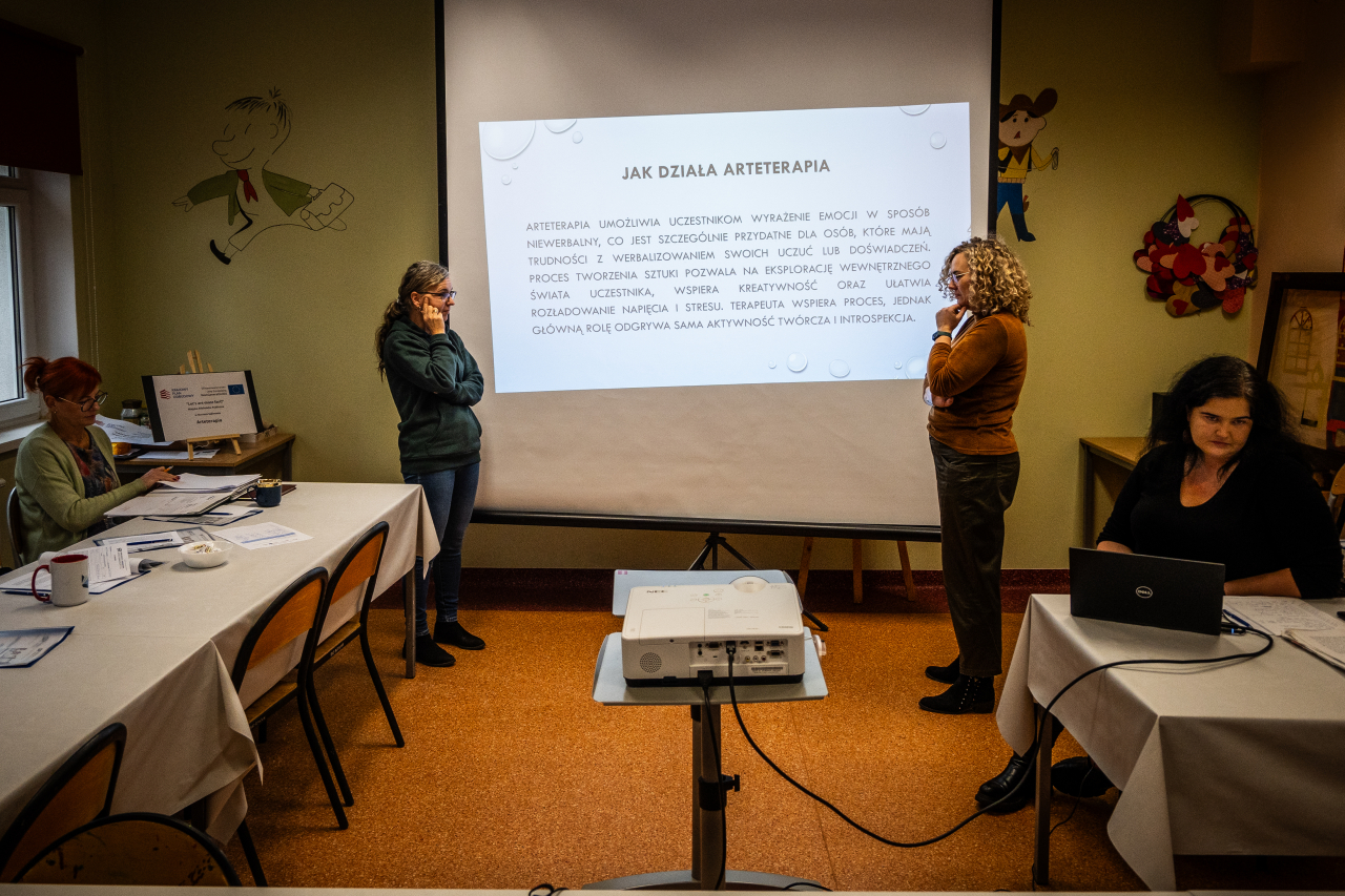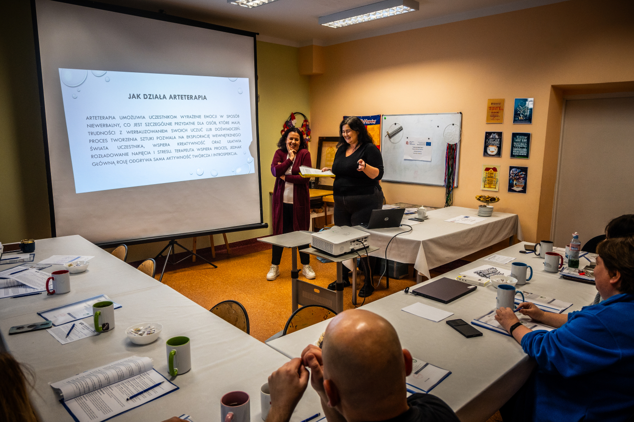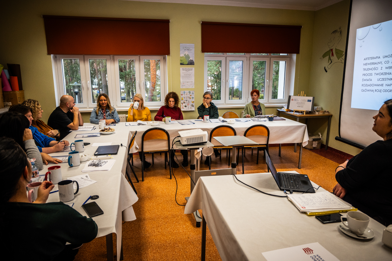Szkolenie było także okazją do wymiany doświadczeń i pomysłów między uczestnikami, co wzbogaciło całość i stworzyło przestrzeń do wspólnego rozwoju. Wyposażeni w nowe narzędzia i inspiracje, możemy teraz wprowadzać arteterapię do naszych działań, oferując swoim grupom coś, co nie tylko rozwija kreatywność, ale także wspiera dobrostan psychiczny i emocjonalny. Dziękujemy za udział i mamy nadzieję, że zdobyta wiedza i umiejętności będą cennym wsparciem w Waszej pracy!