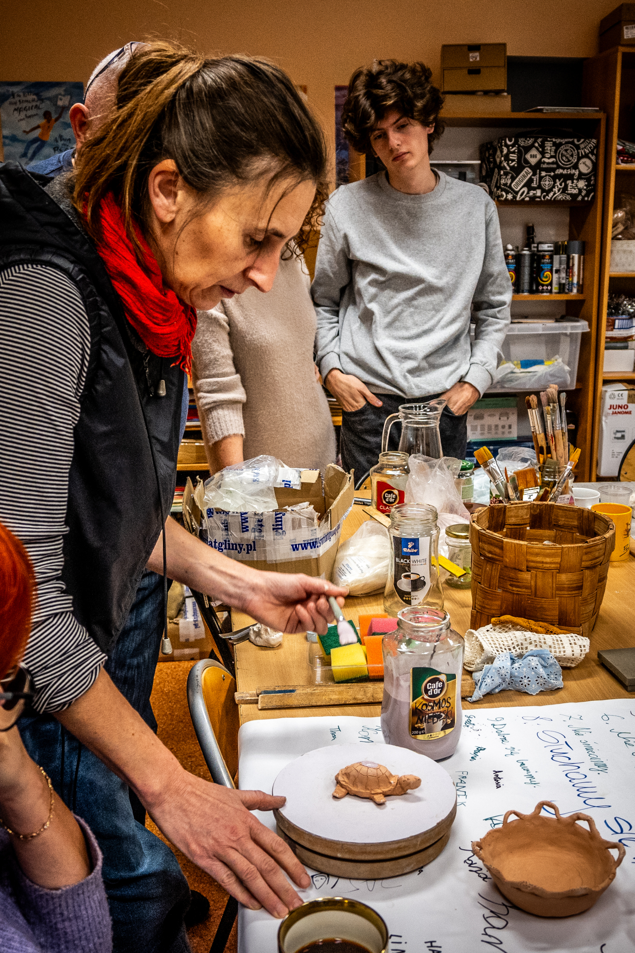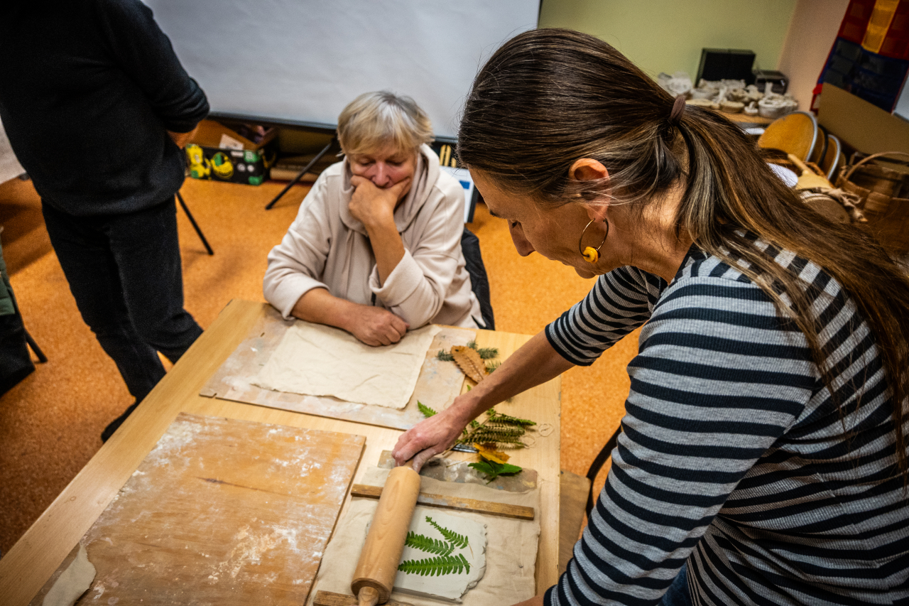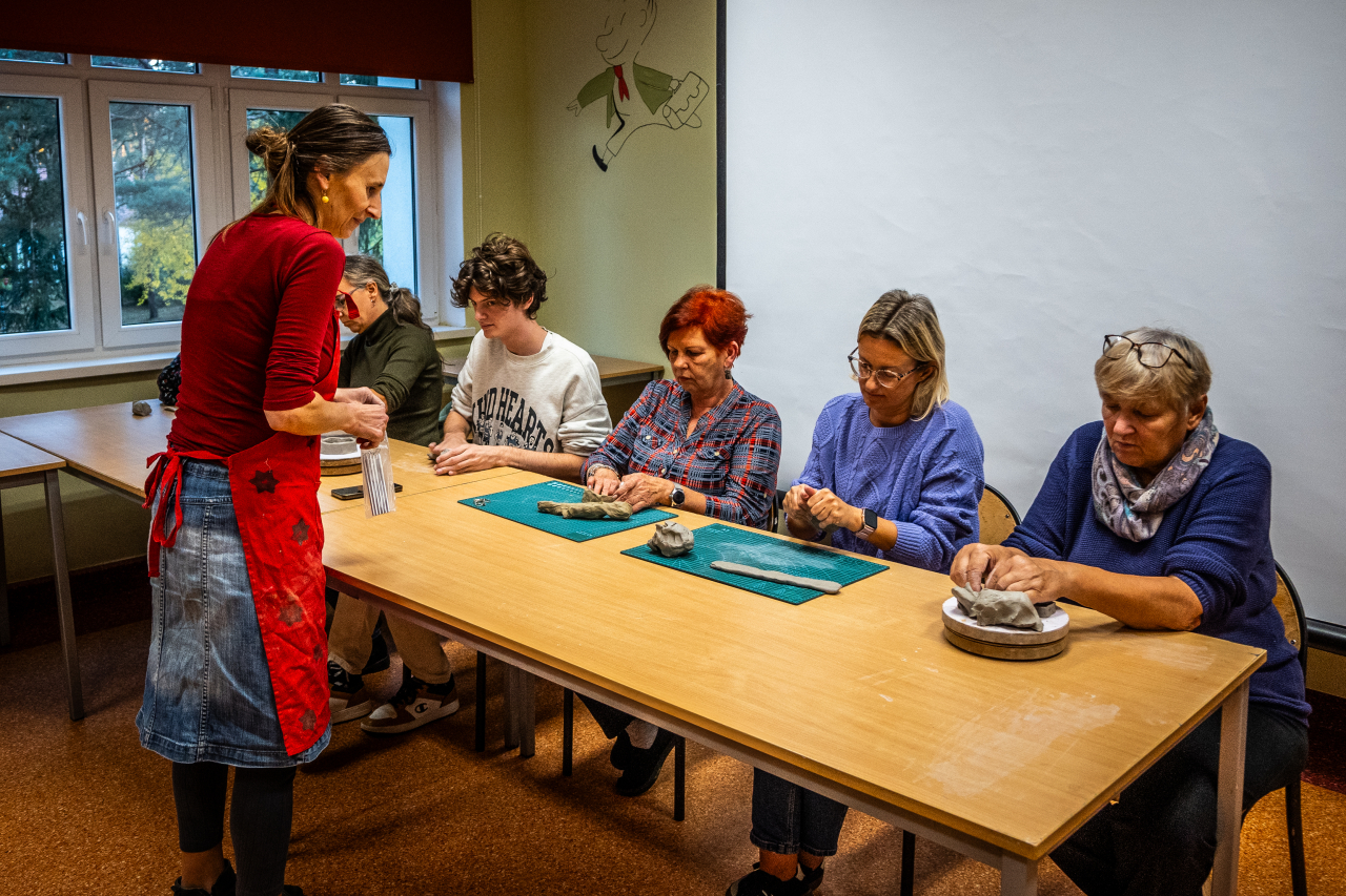 Podczas warsztatów pani Asia nauczyła uczestników podstawowych technik lepienia i zdobienia ceramiki, odkrywając magię ręcznej pracy z gliną. Dowiedzieli się, jaką rolę odgrywały ceramiczne przedmioty w codziennym życiu naszych przodków. Mogli poczuć radość tworzenia, wyciszyć się i skupić na procesie rękodzielniczym.