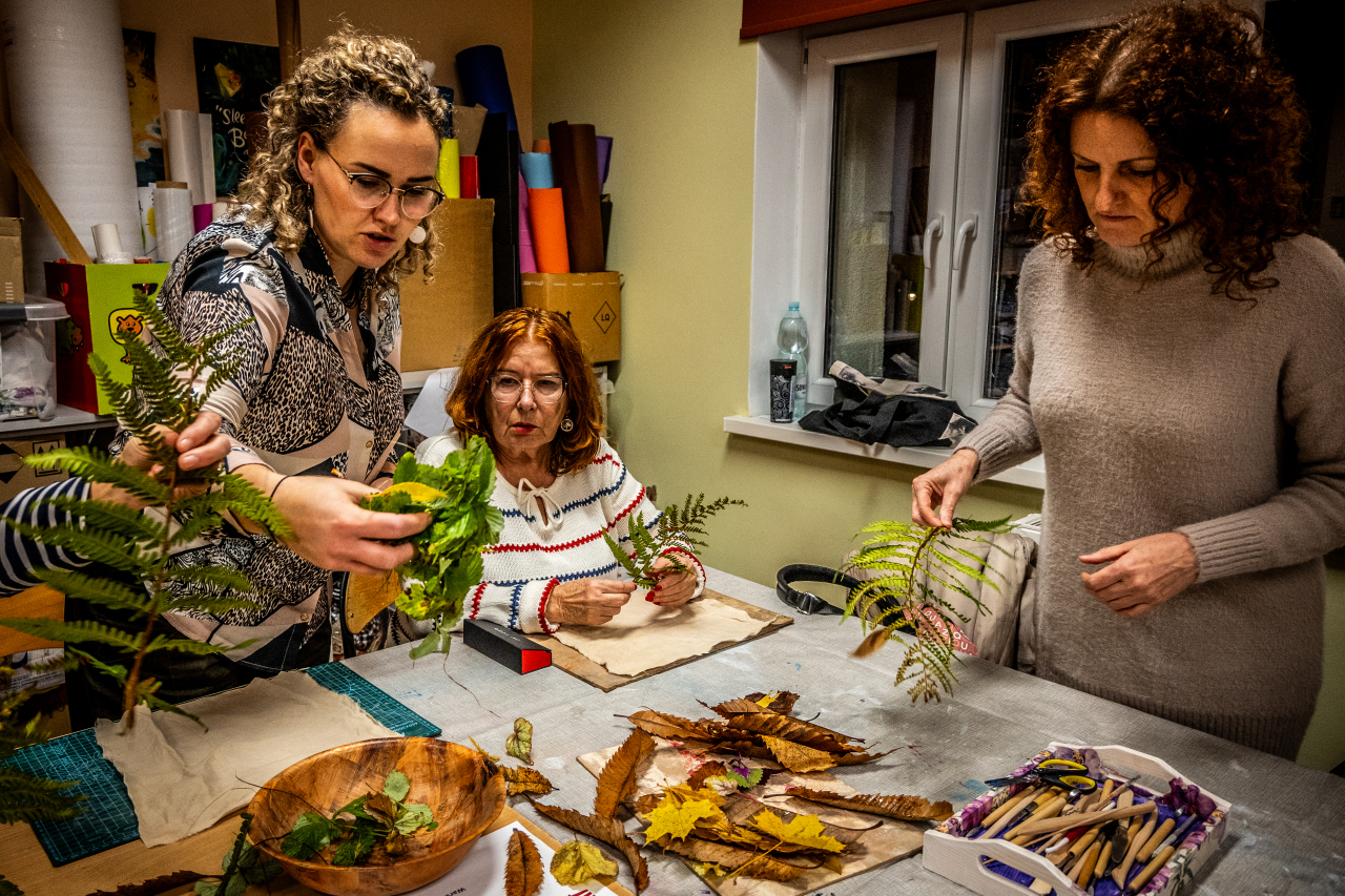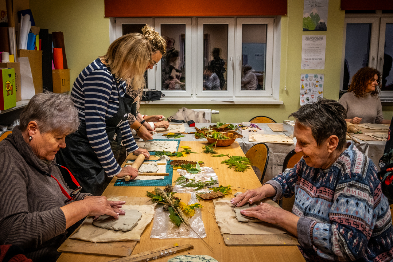 Warsztaty były również wspaniałą okazją do integracji mieszkańców. Wspólna praca przy stołach, dzielenie się doświadczeniami i podziwianie efektów własnej kreatywności wprowadziły wyjątkową atmosferę.