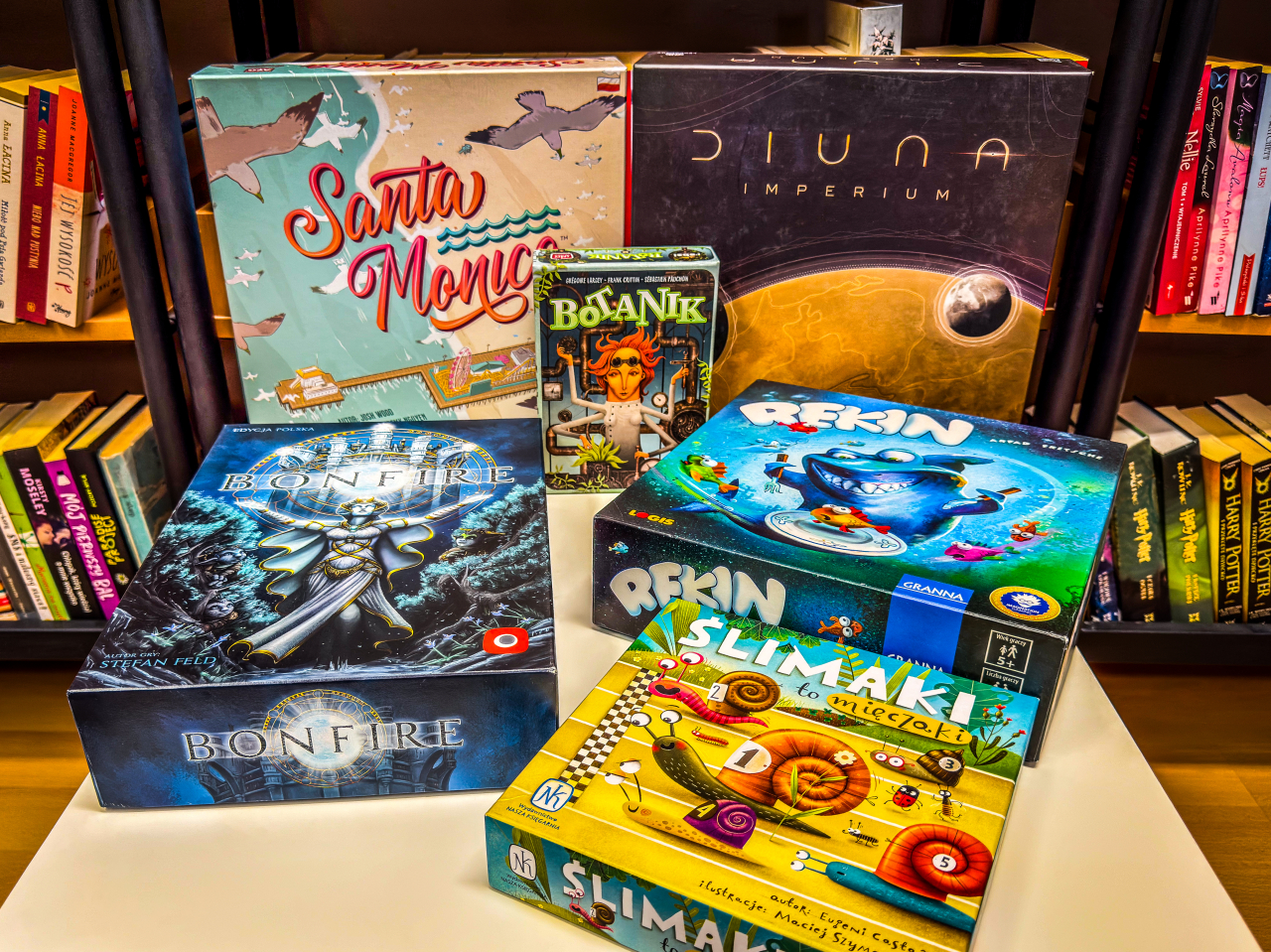 Biorąc udział w projekcie Książnicy Pomorskiej im. Stanisława Staszica „Planszówki w bibliotece”, wzbogaciliśmy nasze zbiory do końca wakacji o nowe pozycje: Diuna Imperium, Botanik, Rekin, Santa Monica, Ślimaki to mięczaki, Bonfire.